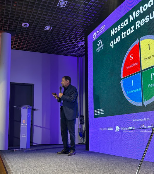 Logo depois, o designer educacional da Ânima Soluções, Sergio Itamar, apresentou a palestra “O delírio da disrupção como armadilha da inovação”. Ele explica os perigos de tomar decisões baseadas na vontade de crescer rapidamente, deixando de lado o planejamento e o que realmente importa para a sua cooperativa.